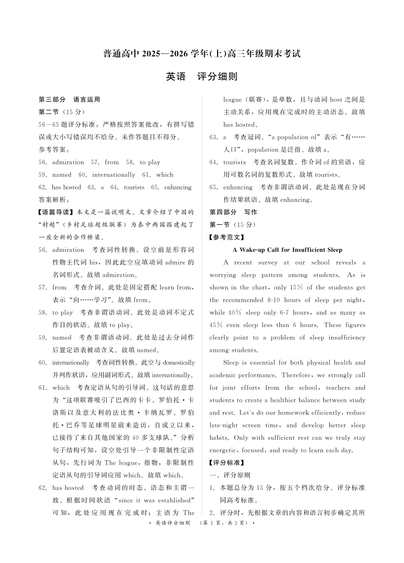 普通高中2025-2026学年(上)高三年级期末考试 英语评分细则.pdf