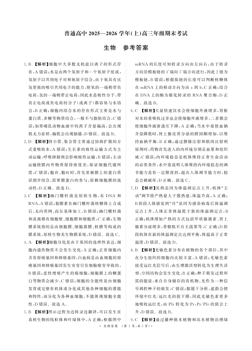 普通高中2025-2026学年(上)高三年级期末考试 生物答案.pdf