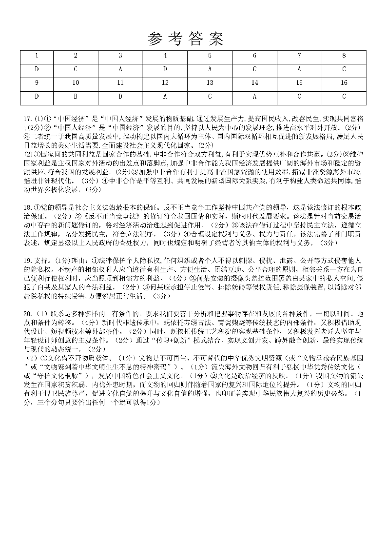 成都市第七中学2025—2026学年度上期高2026届期末考试 政治答案.pdf