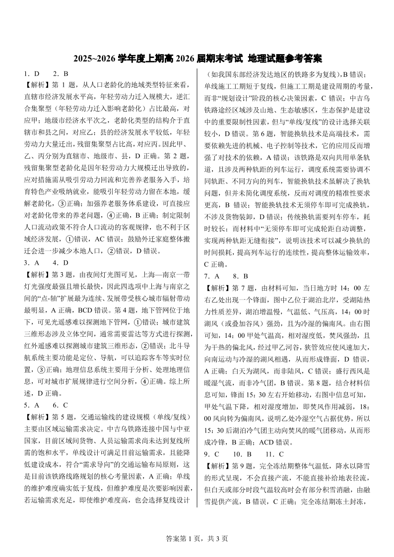 成都市第七中学2025—2026学年度上期高2026届期末考试 地理答案.pdf