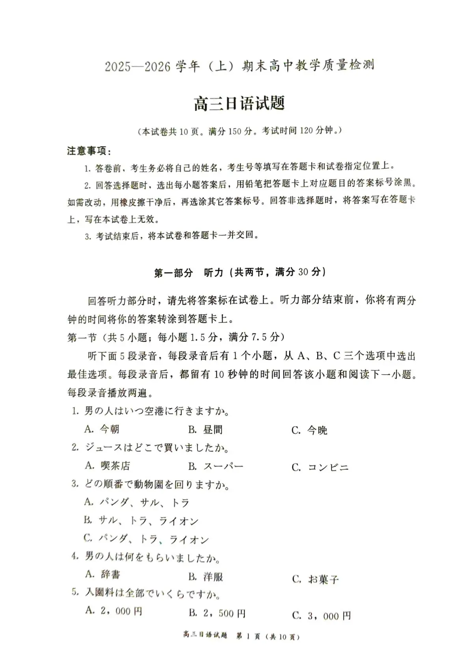 漳州市2025—2026学年(上)高三期末高中教学质量检测 日语.pdf