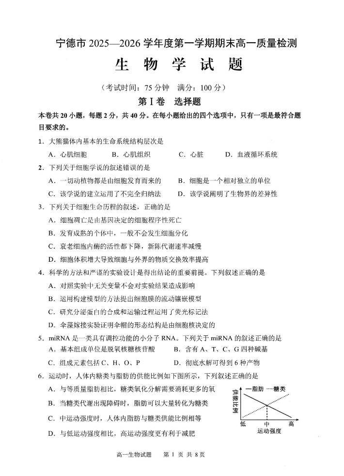 宁德市2025-2026学年度第一学期期末高一年级质量检测 生物.pdf