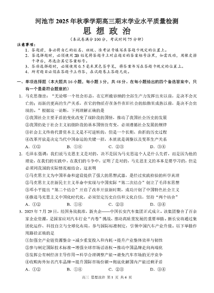 河池市2025年秋季学期高三期末学业水平质量检测 政治.pdf