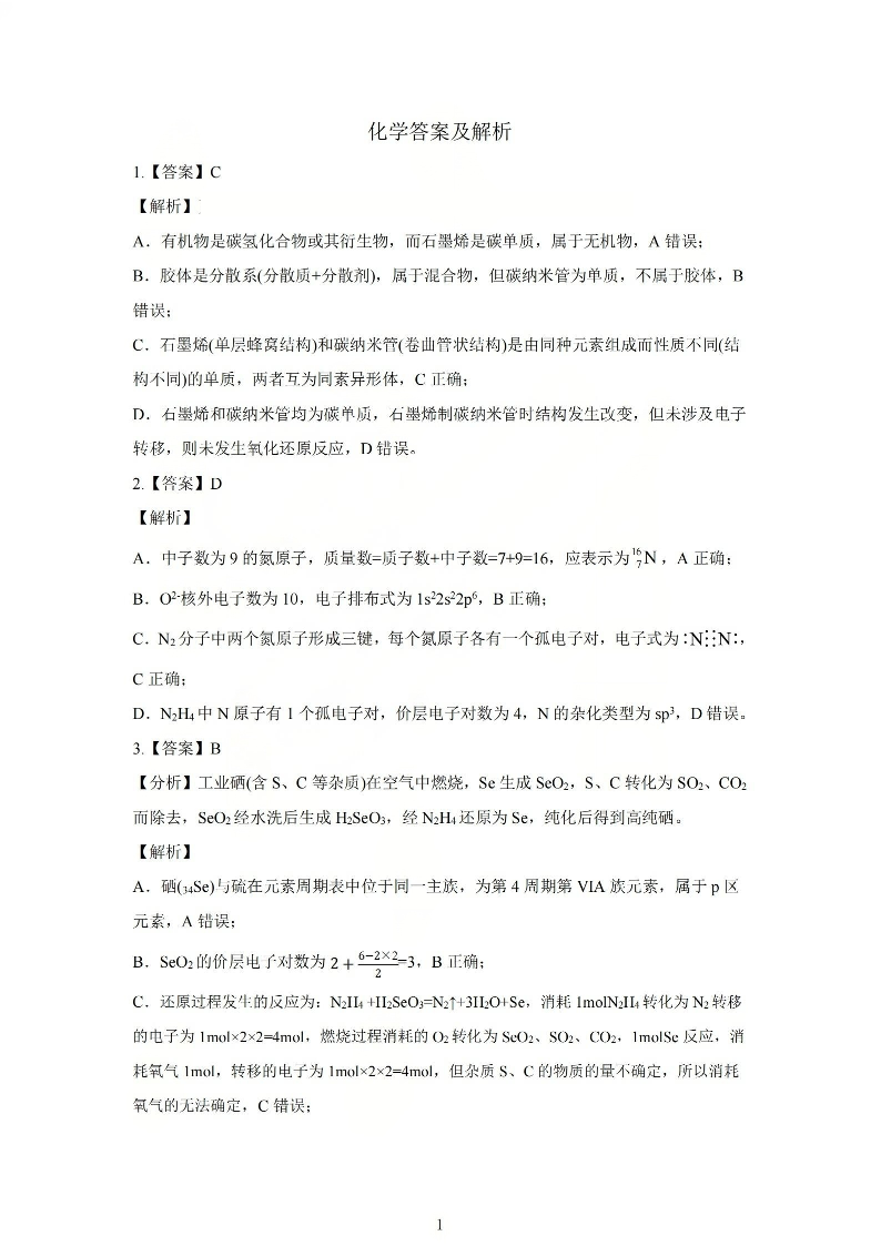 2025-2026学年高三第一学期期末调研测试 化学答案.pdf