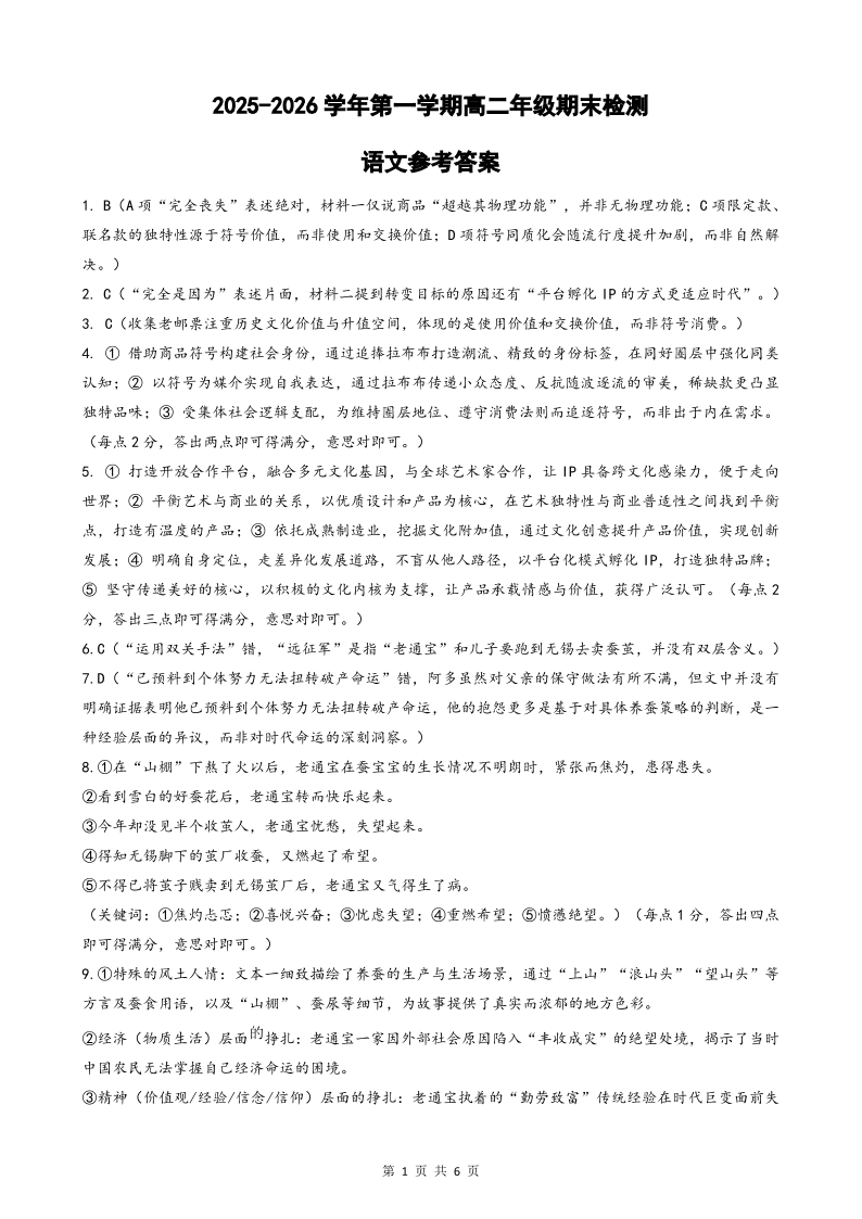 安徽省皖中名校联考2025-2026学年高二上学期2月期末 语文答案.pdf