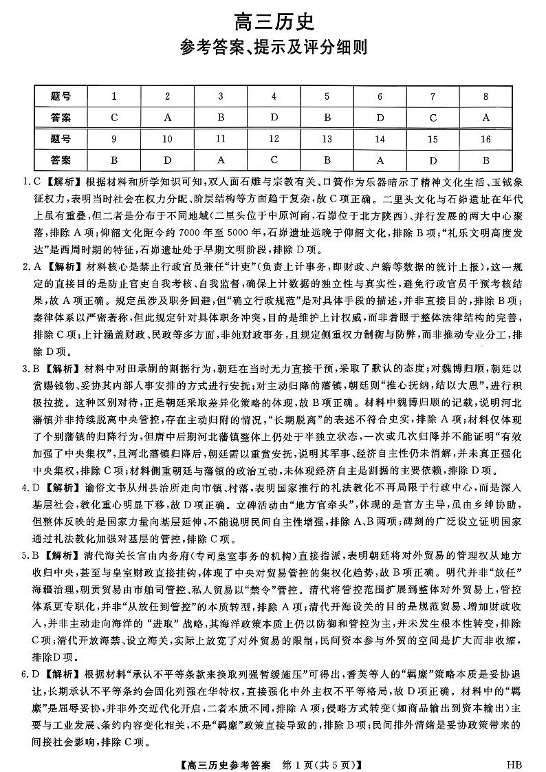 河北省金科大联考2026届高三年级2月阶段性联考 历史答案.pdf