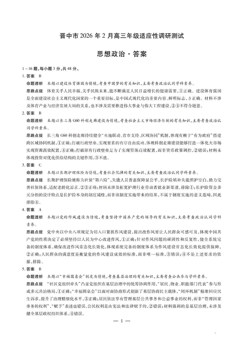 山西省晋中市2026年2月高三年级适应性调研考试 政治答案.pdf