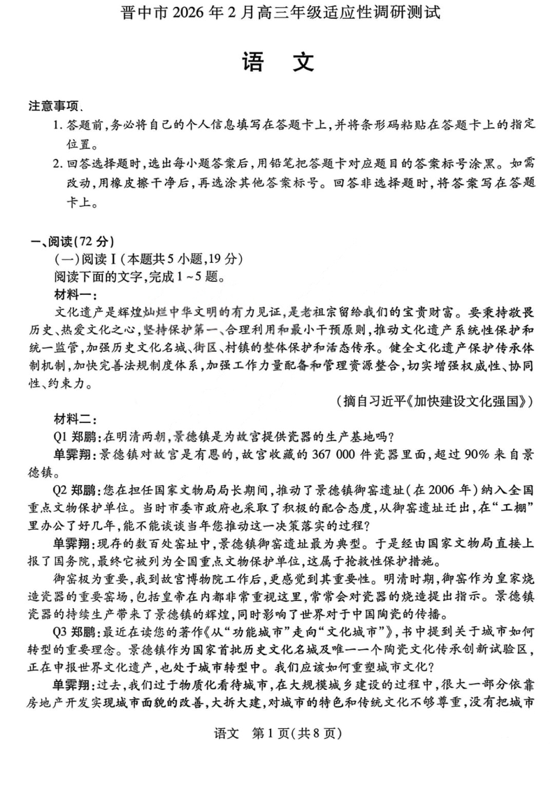 山西省晋中市2026年2月高三年级适应性调研考试 语文.pdf