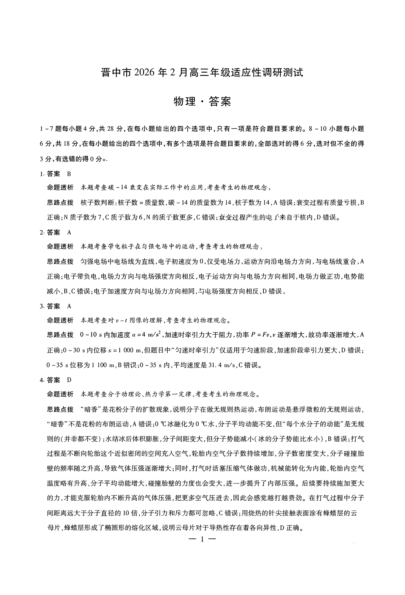 山西省晋中市2026年2月高三年级适应性调研考试 物理答案.pdf