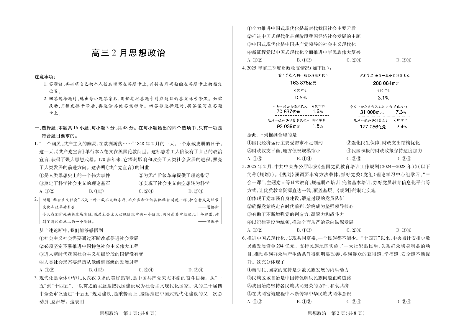 毫州市普通高中2025—2026学年度第一学期高三期末质量检测 政治.pdf