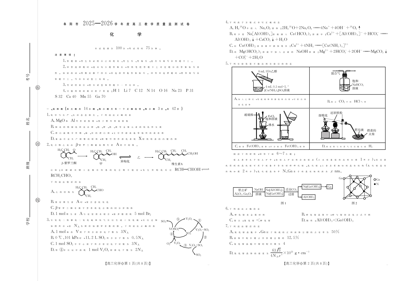 安徽省阜阳市2025一2026学年度高三教学质量监测 化学.pdf