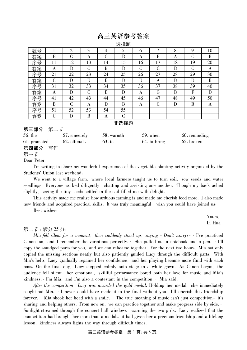 安徽省鼎尖联考2025-2026学年高三上学期期末过程性学科素质评价 英语答案.pdf