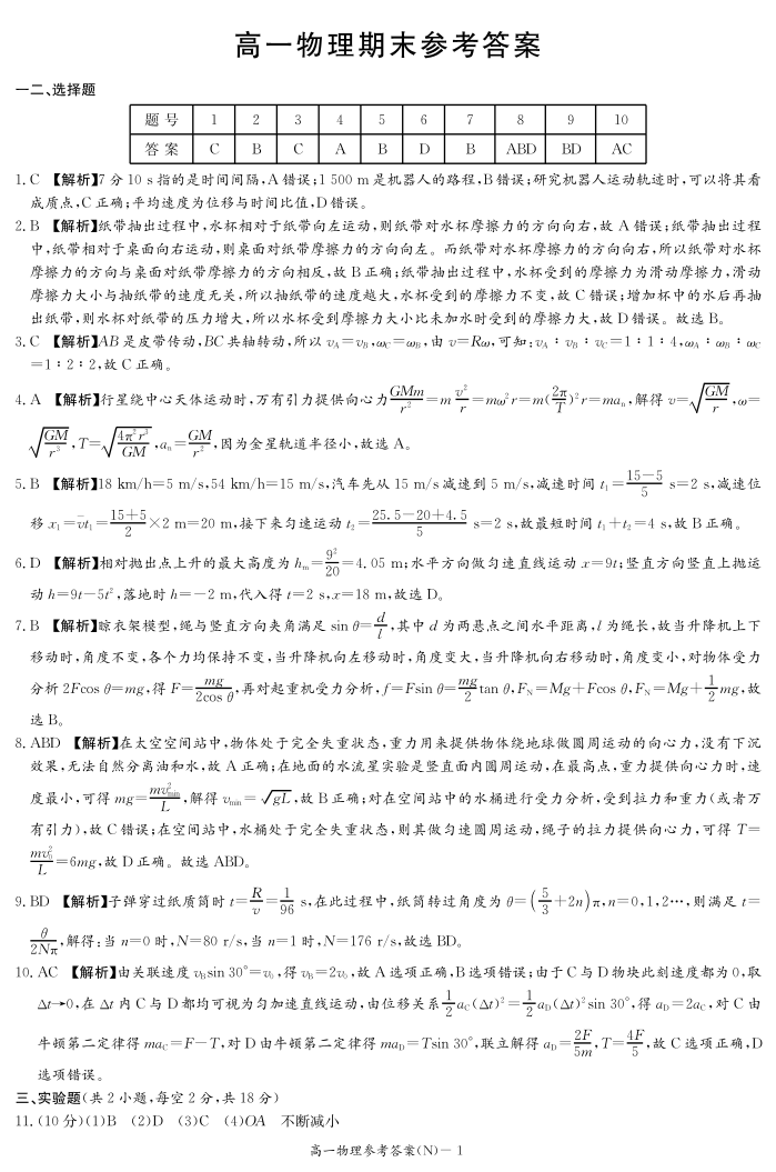 物理答案(高一期末N).pdf