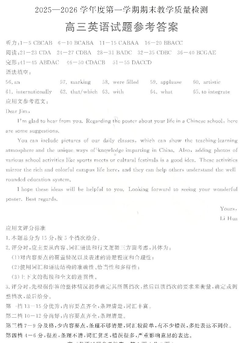 山东省聊城市2025-2026学年度第一学期高三年级期末教学质量检测 英语答案.pdf