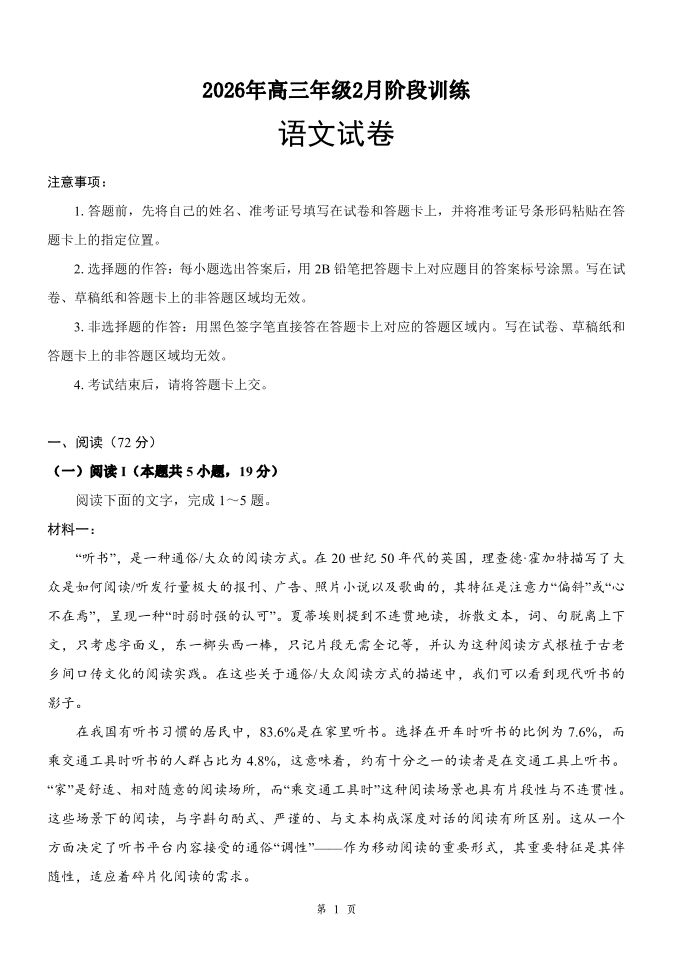 湖北省云学联盟2026年高三年级2月阶段训练 语文.pdf