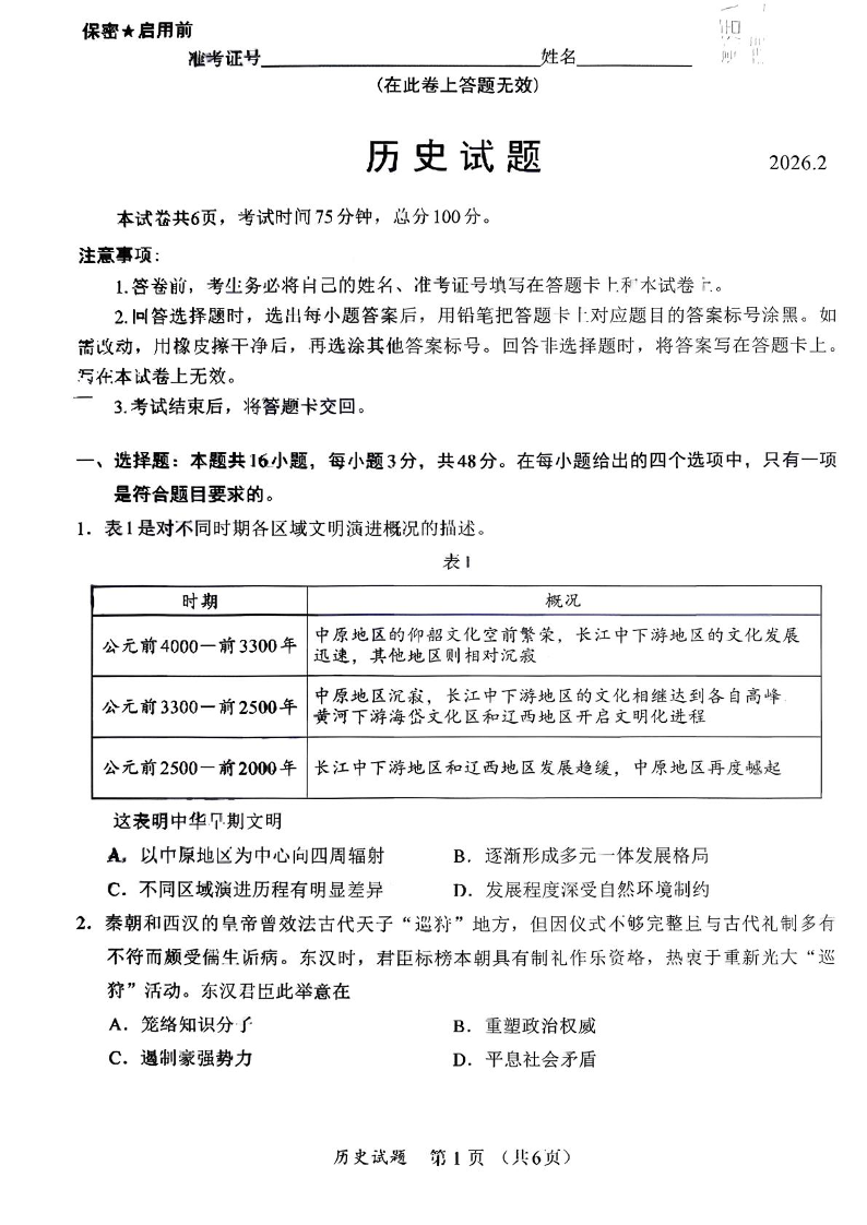 福建省名校联盟2026届高三下学期开学考试 历史试题(含答案).pdf