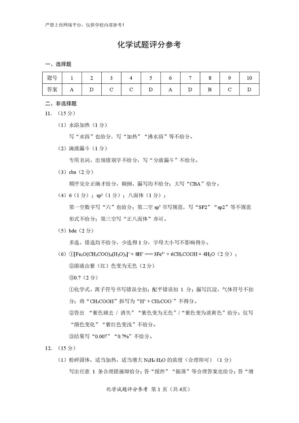 福建省名校联盟2026届高三下学期开学考试 化学答案.pdf