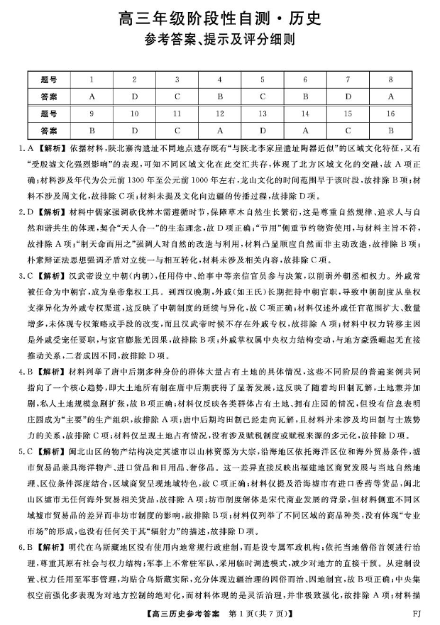 福建2025-2026学年高三年级下学期开学阶段性自测 历史答案.pdf