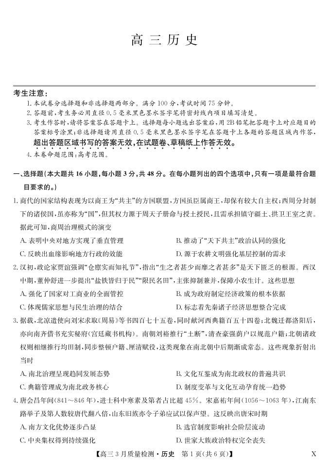 黑吉辽蒙九师联盟2026届高三下学期3月质量检测 历史.pdf
