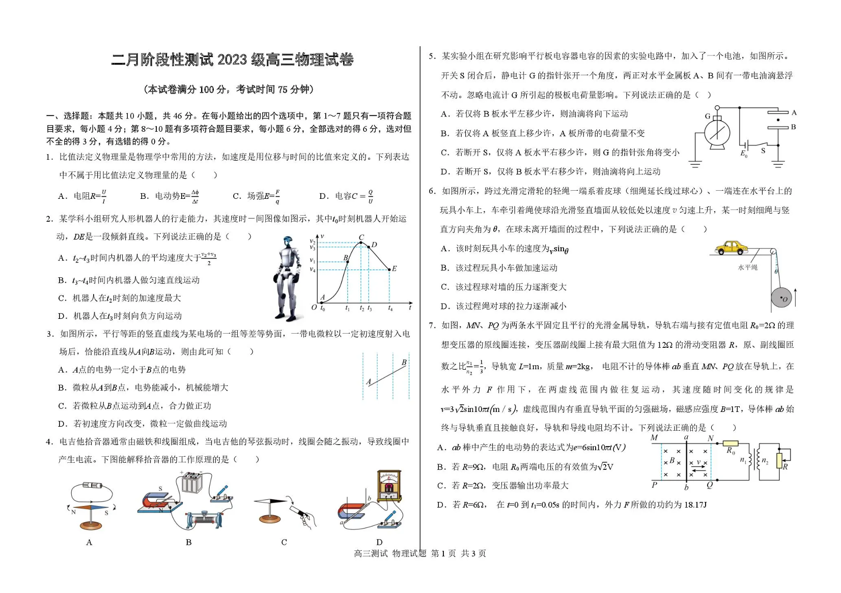 哈尔滨市第一中学、第六中学2026年2月高三零模模拟考试 物理.pdf