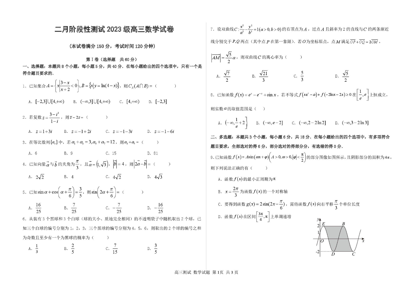 哈尔滨市第一中学、第六中学2026年2月高三零模模拟考试 数学.pdf