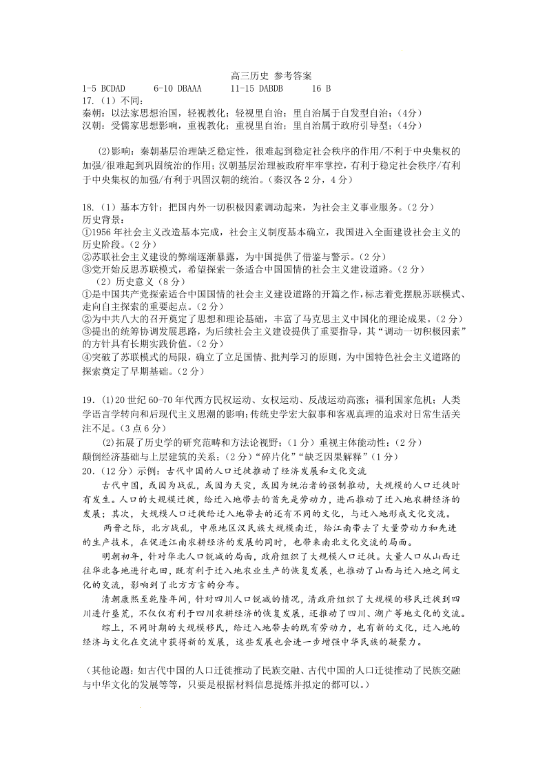 哈尔滨市第一中学、第六中学2026年2月高三零模模拟考试 历史答案.pdf