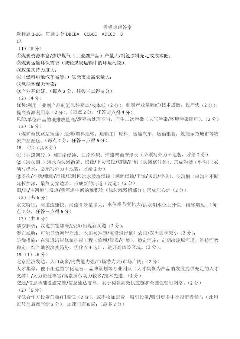哈尔滨市第一中学、第六中学2026年2月高三零模模拟考试 地理答案.pdf