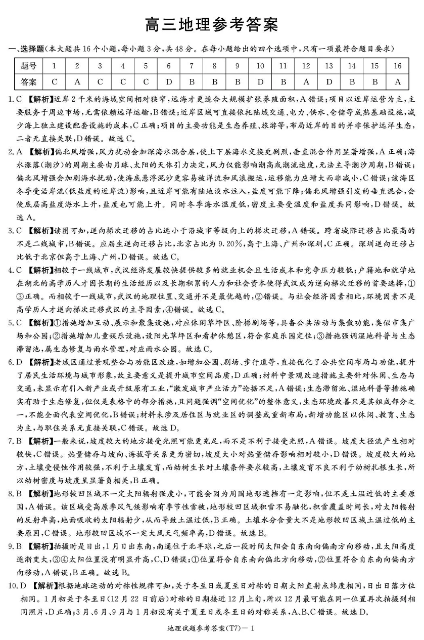 湖南师大附中2026届高三月考试卷(七)地理答案.pdf