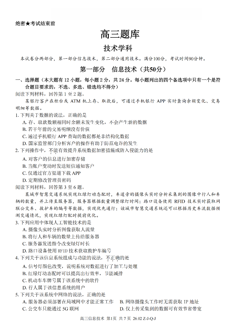 浙江省(浙南名校、七彩阳光、精诚联盟、金兰教育)2026年2月题库 技术.pdf