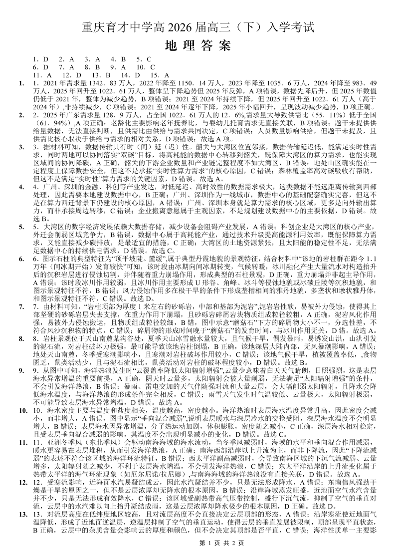 重庆育才中学高2026届高三(下)入学考试 地理答案.pdf