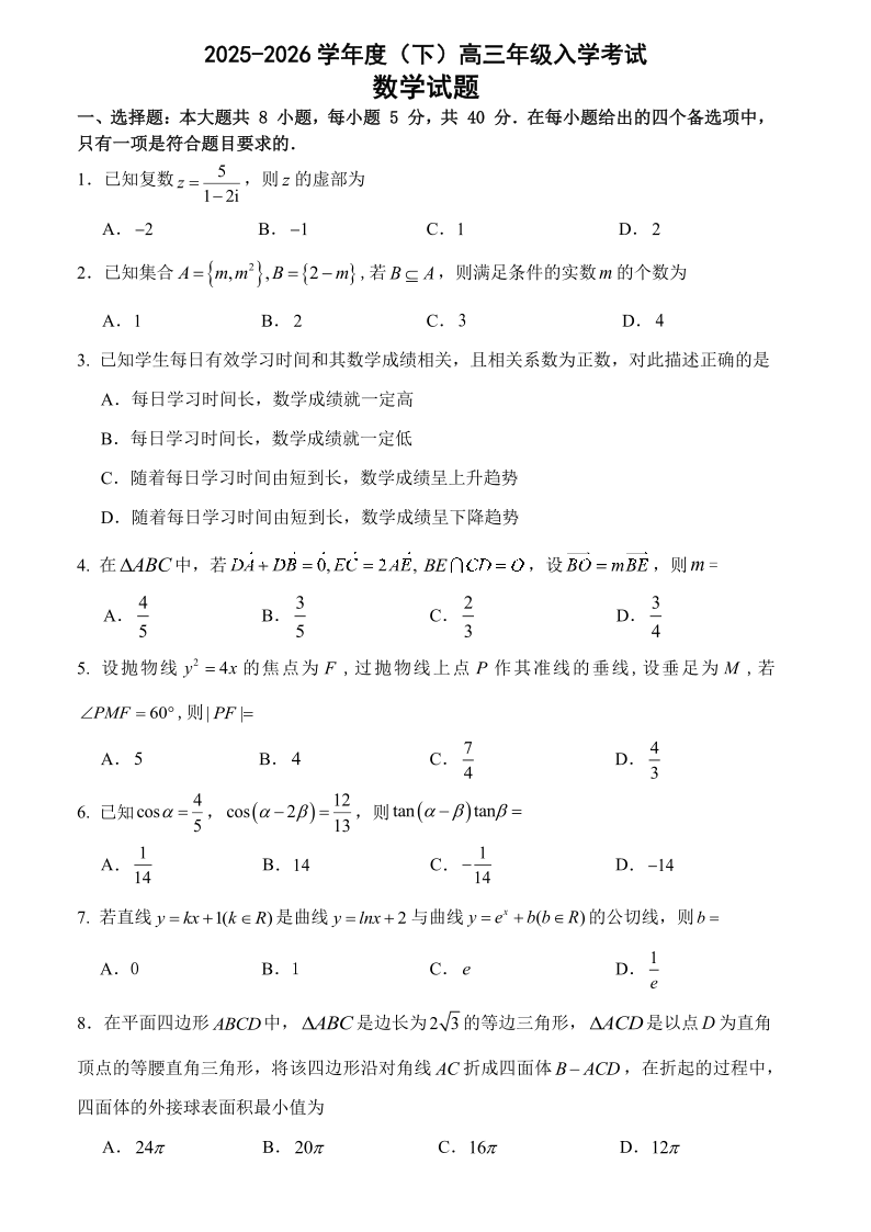 重庆市第八中学校2025-2026学年度(下)高三年级入学考试 数学.pdf