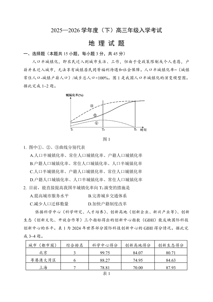重庆市第八中学校2025-2026学年度(下)高三年级入学考试 地理.pdf