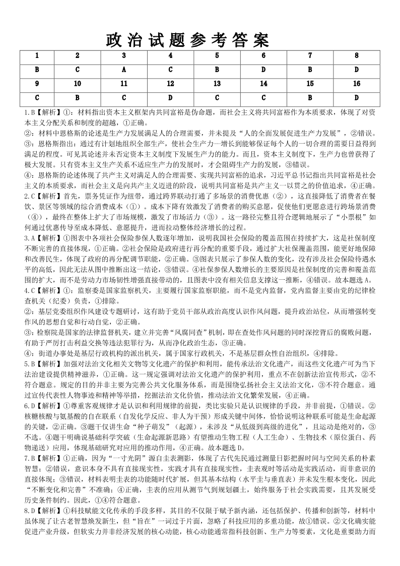 成都市第七中学2025—2026学年度下期高2026届开学考试 政治答案.pdf