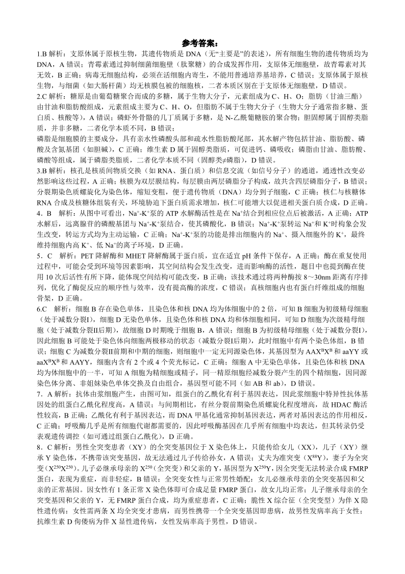成都市第七中学2025—2026学年度下期高2026届开学考试 生物答案.pdf