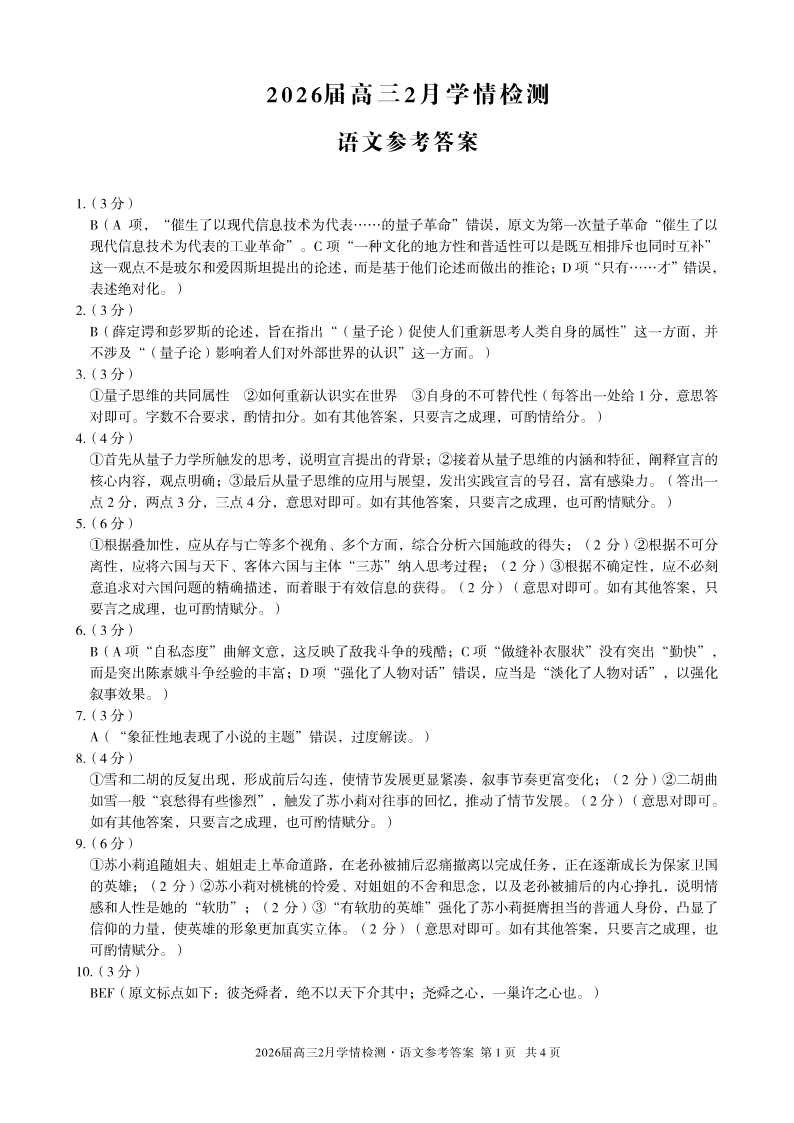 安徽省·A10联盟2026届高三下学期2月学情检测 语文答案.pdf