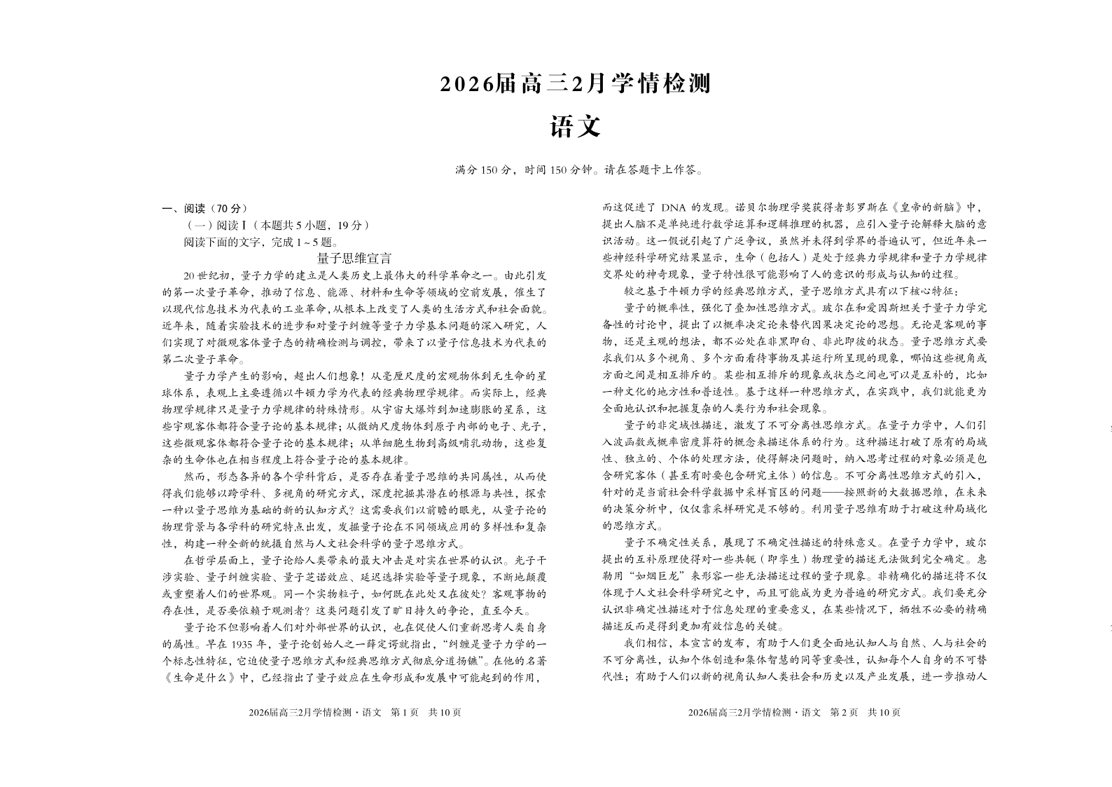 安徽省·A10联盟2026届高三下学期2月学情检测 语文.pdf