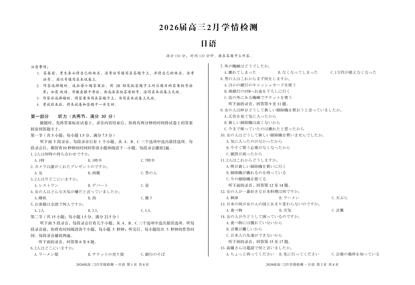 安徽省·A10联盟2026届高三下学期2月学情检测 日语.pdf