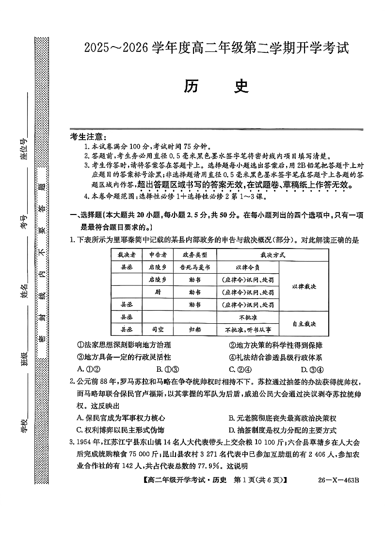 历史-黑龙江省龙东十校联盟2025-2026学年高二下学期开学考(含答案).pdf