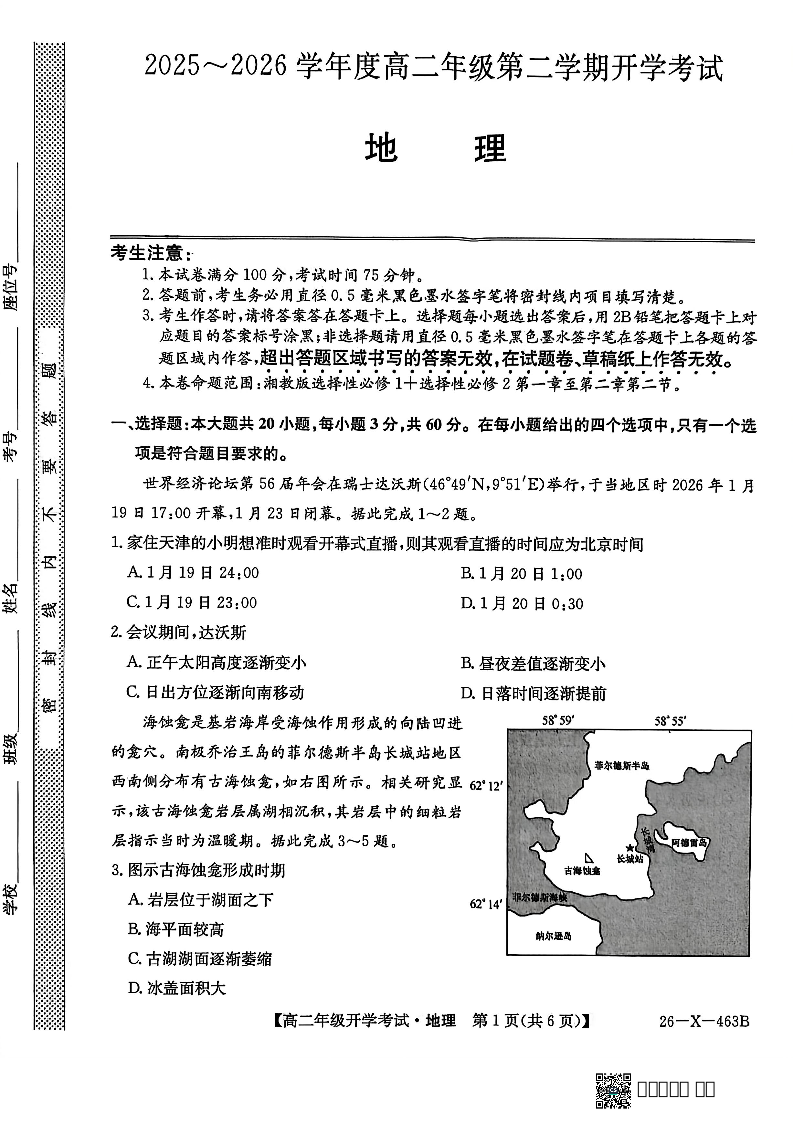 地理-黑龙江省龙东十校联盟2025-2026学年高二下学期开学考(含答案).pdf