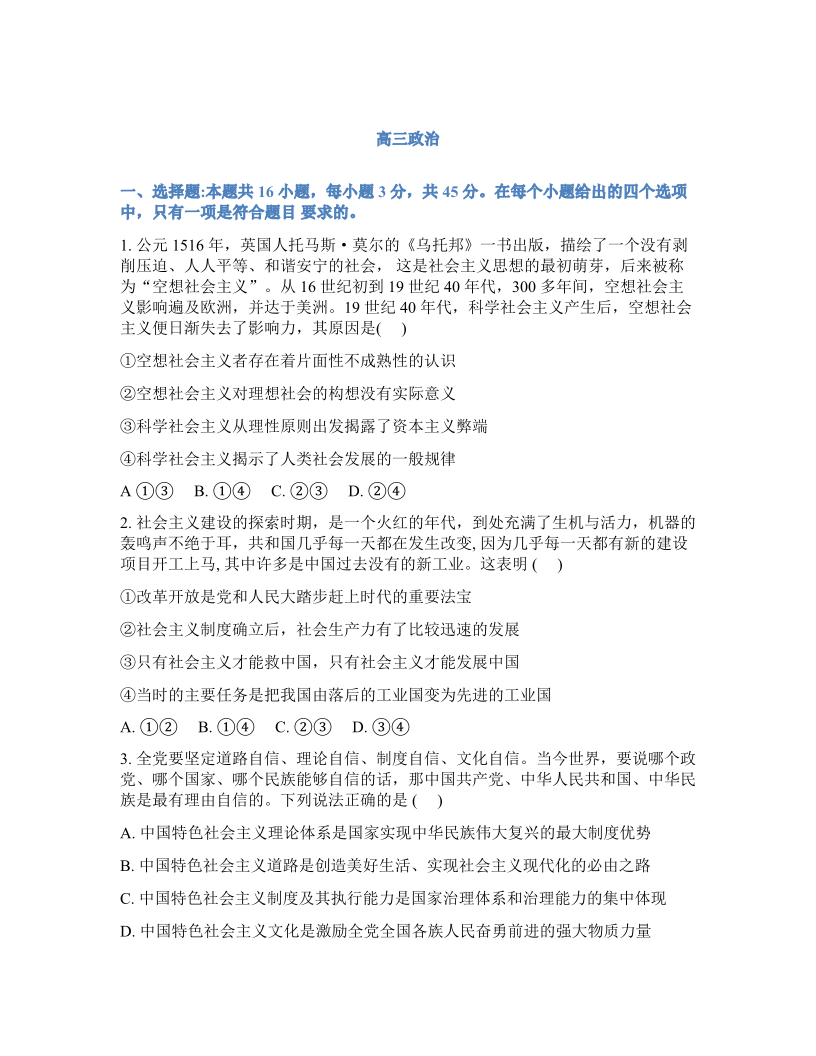 吉林省通化市梅河口市第五中学2025-2026学年高三下学期开学考 政治试题(含答案).pdf
