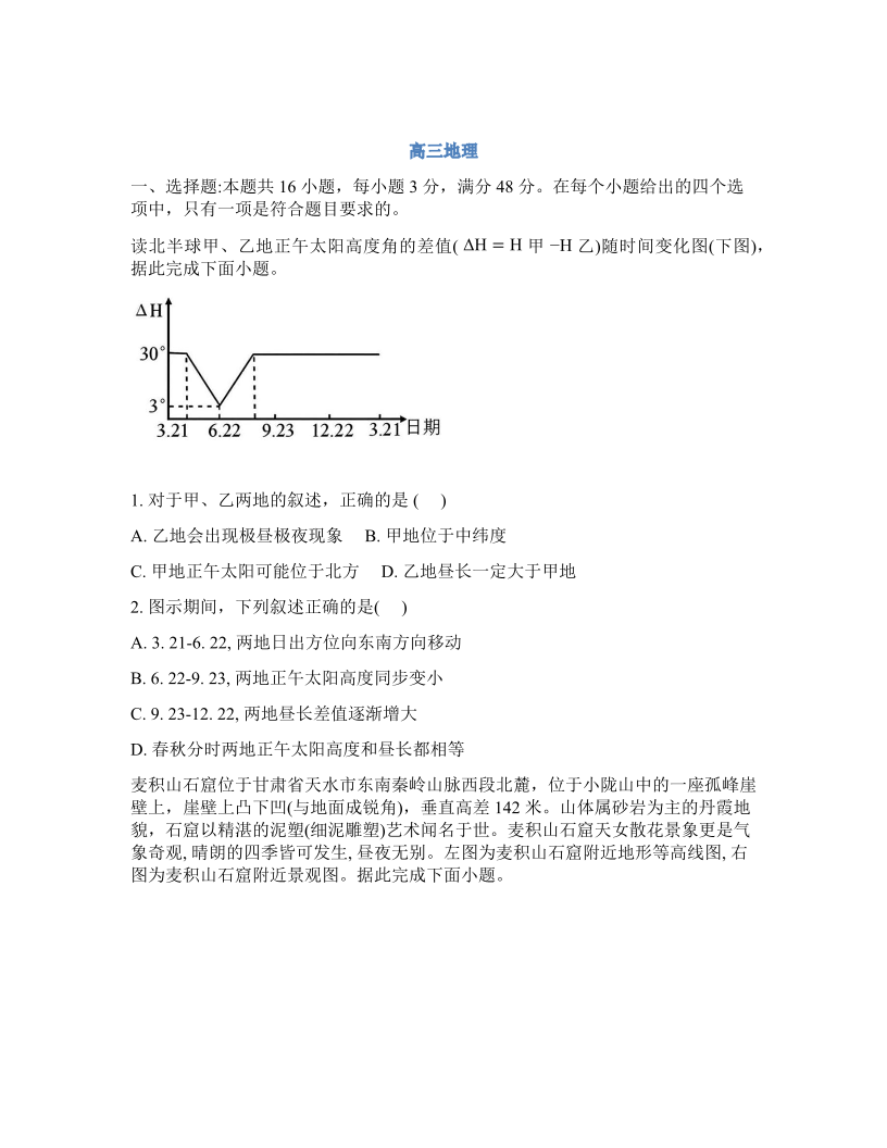吉林省通化市梅河口市第五中学2025-2026学年高三下学期开学考 地理试题(含答案).pdf