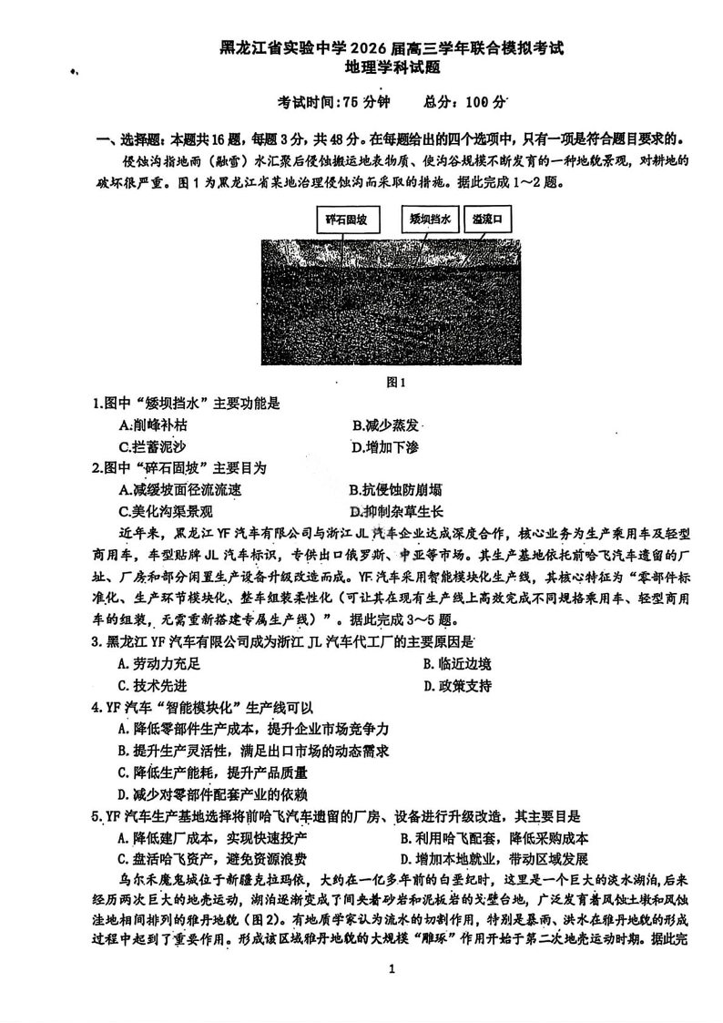 黑龙江省实验中学2026届高三学年联合模拟考试 地理.pdf