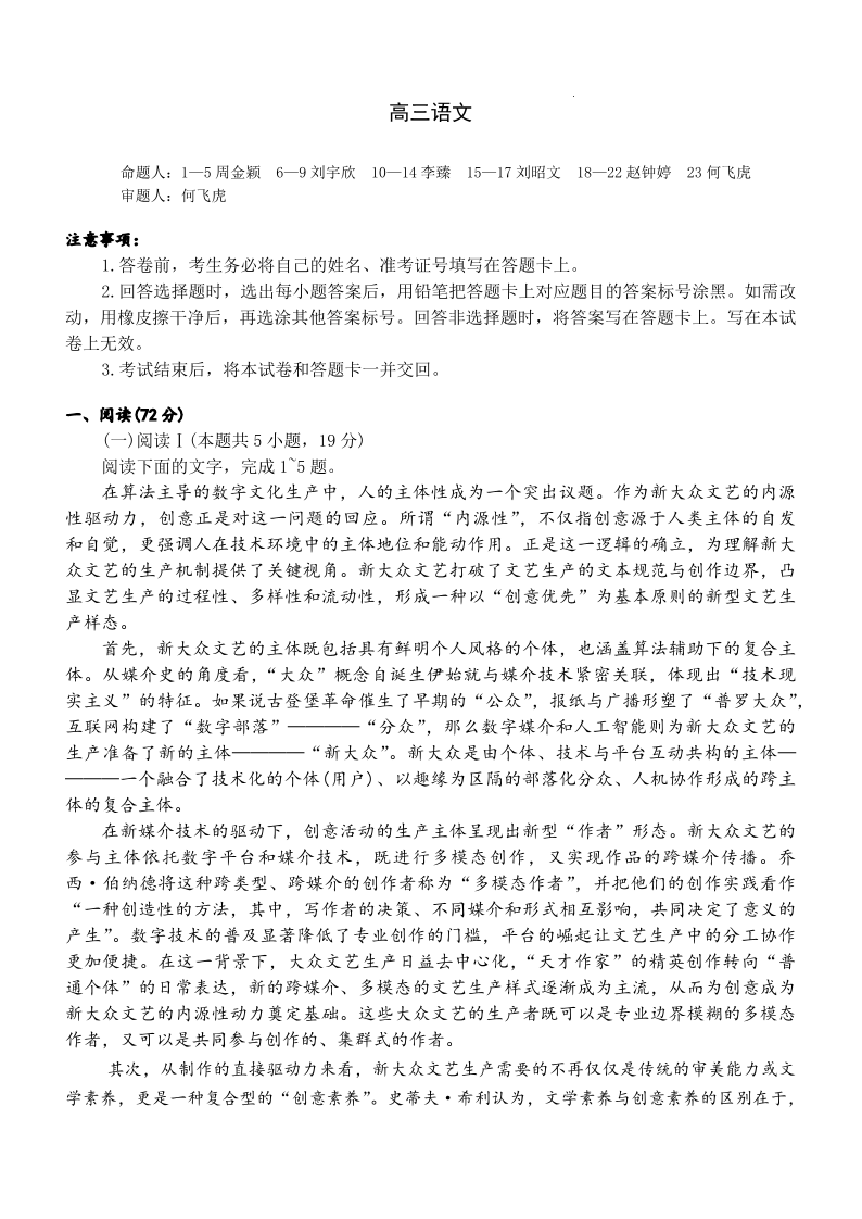 湖南长沙市雅礼中学2025-2026学年高三下学期开学考 语文.pdf