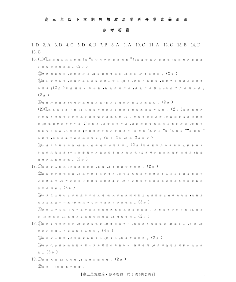 江西省2025-2026学年高三下学期2月开学素养训练 政治答案.pdf