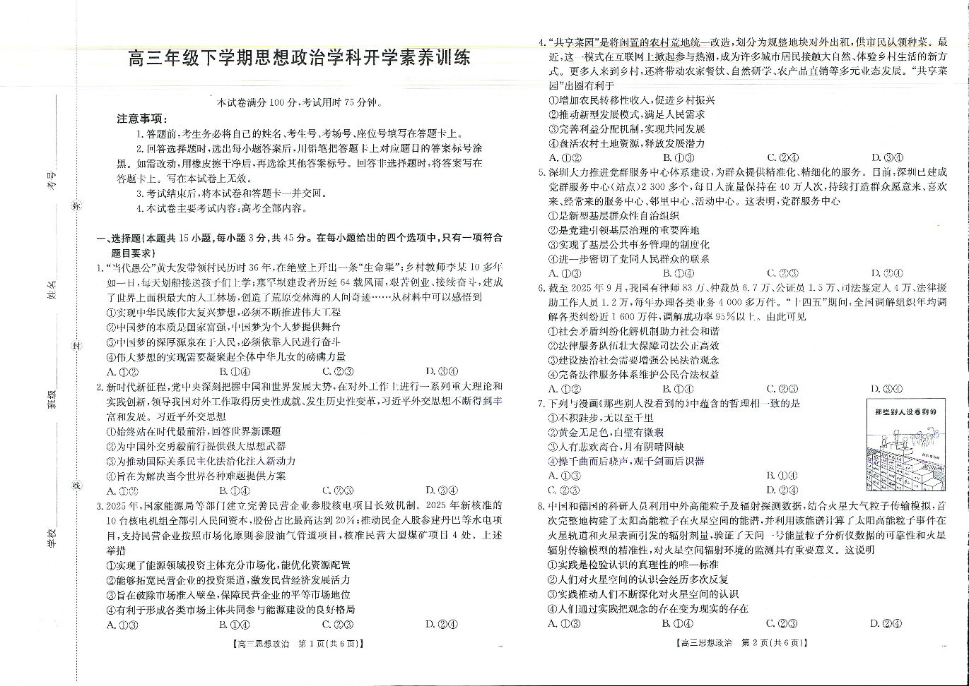 江西省2025-2026学年高三下学期2月开学素养训练 政治.pdf