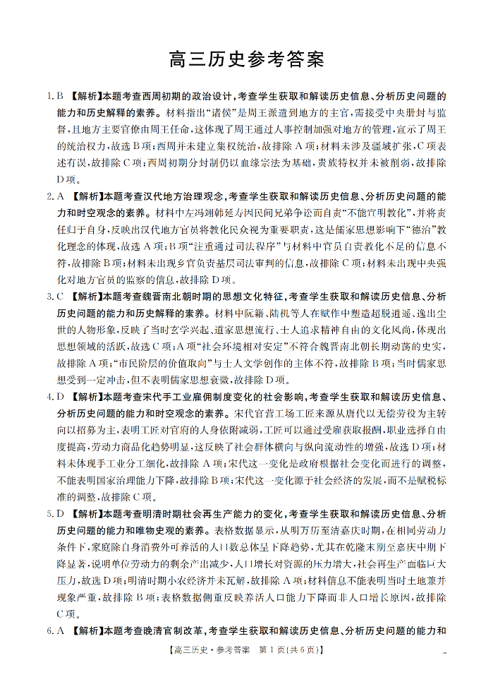 云南省2026届高三上学期2月期末联考 历史答案.pdf