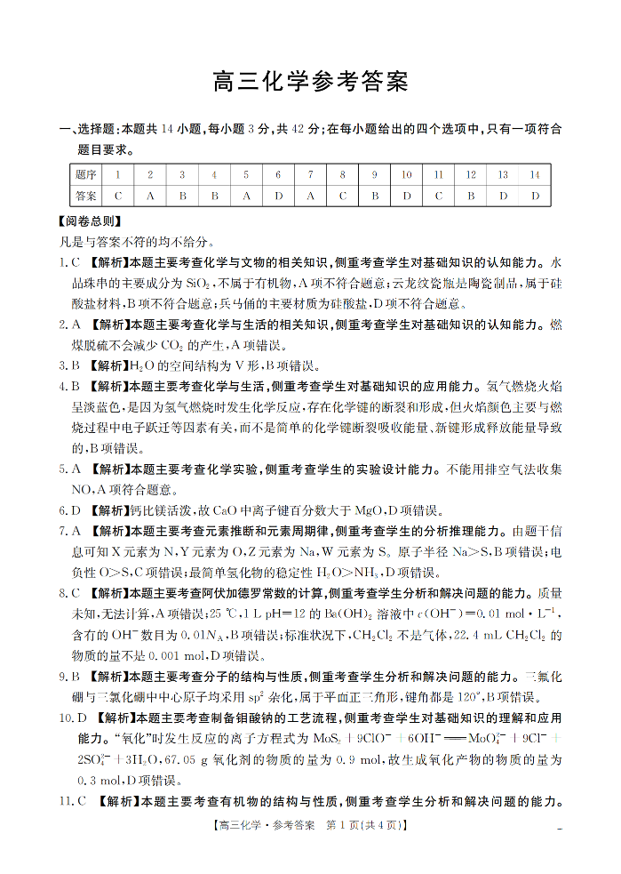 云南省2026届高三上学期2月期末联考 化学答案.pdf