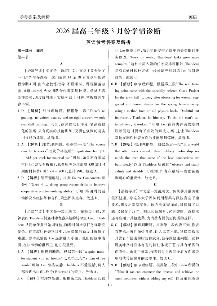 广东省衡水金卷2026届高三年级3月份学情诊断 英语答案.pdf