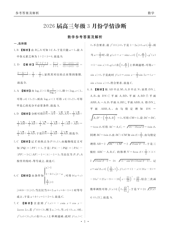 广东省衡水金卷2026届高三年级3月份学情诊断 数学答案.pdf