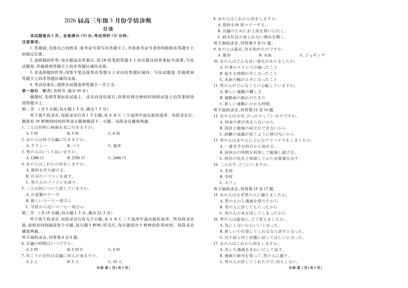 广东省衡水金卷2026届高三年级3月份学情诊断 日语.pdf